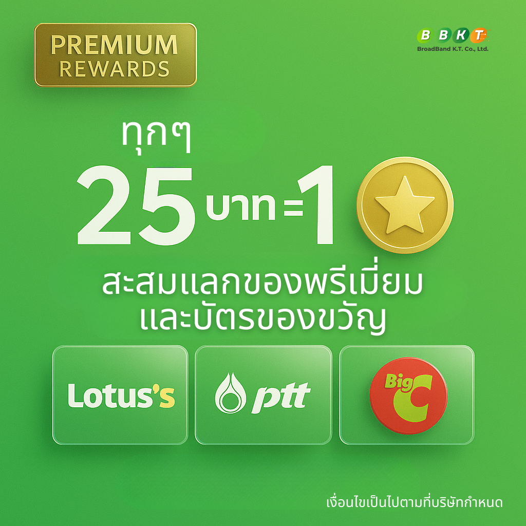 สะสมแต้มทุกๆการสั่งซื้อ 25 บาท = 1 แต้ม